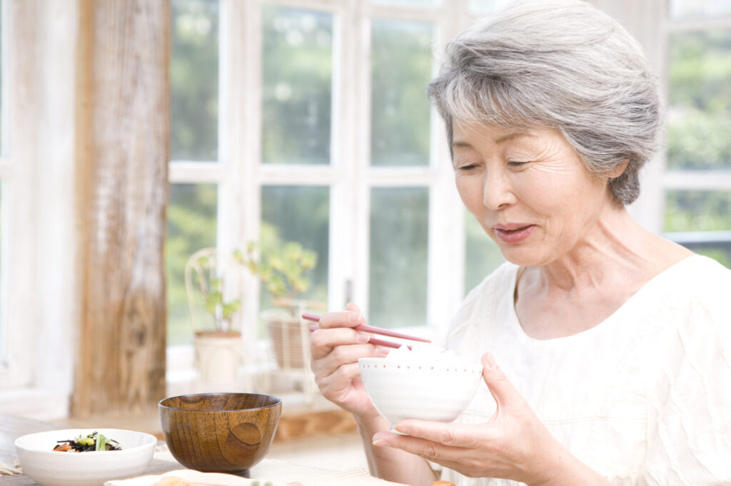 口腔機能低下症を防ぐためには、無理のない範囲で噛み応えのある食材を食事に取り入れることが大切です。大きさを調整した野菜や、少し歯ごたえのあるたんぱく質食品を意識するだけでも、噛む回数は増やせます。