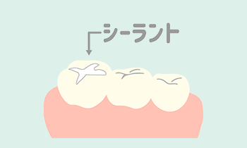 お子さんの奥歯は表面に深い溝があり、汚れが溜まりやすく、むし歯になりやすいのが特徴です。この溝をシーラントと呼ばれる歯科用プラスチックで埋めることで、汚れが溜まりにくく、また歯みがきで汚れを落としやすくなるため、むし歯予防につながります。